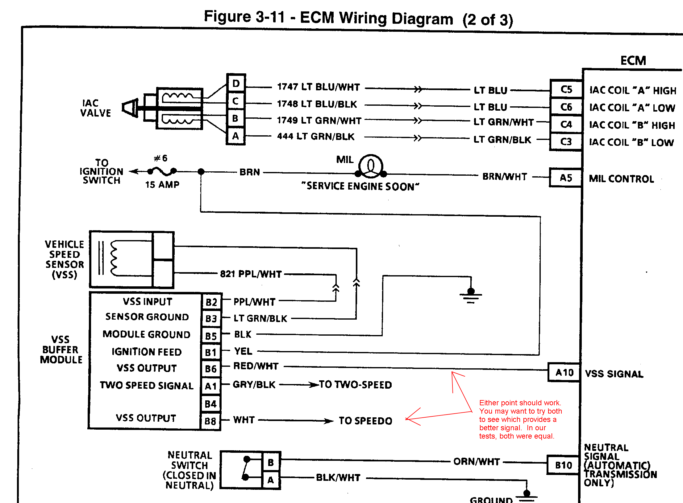 Some inductive pickups, such as those in GM trucks, use a "Buffer" which connects the VSS to the Engine Control Module. In some cases the output of this Buffer is compatible with the ALFA. You will have to experiment to see if this VSS/Buffer combination will provide adequate performance. (See illustration)