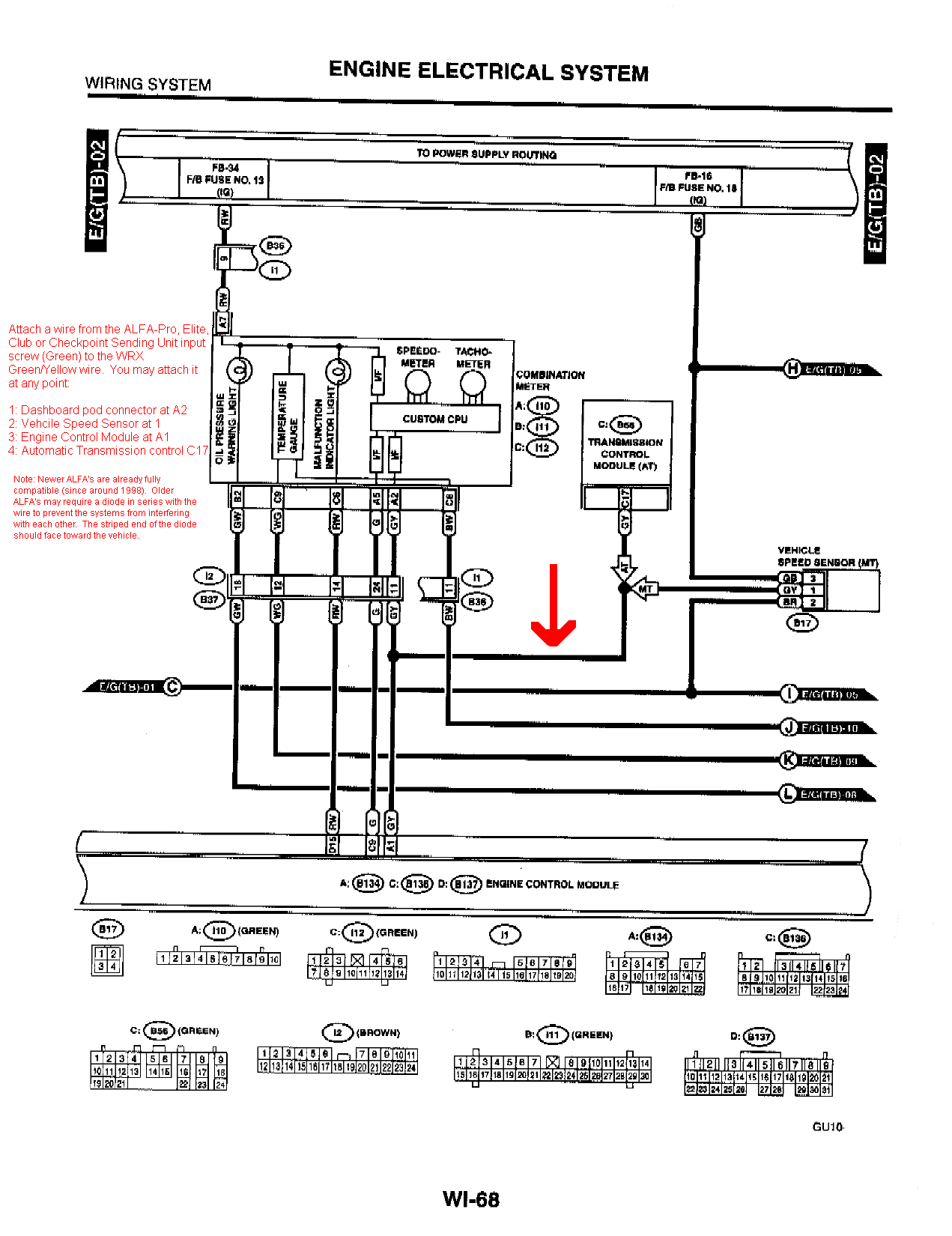 What follows are several wiring diagrams of compatible vehicles marked with the correct location to tap the VSS for use with your ALFA. Your vehicle will have a similar diagram, and you should refer to it carefully before making any connections. These diagrams are large (for clarity) - please be patient while they load.